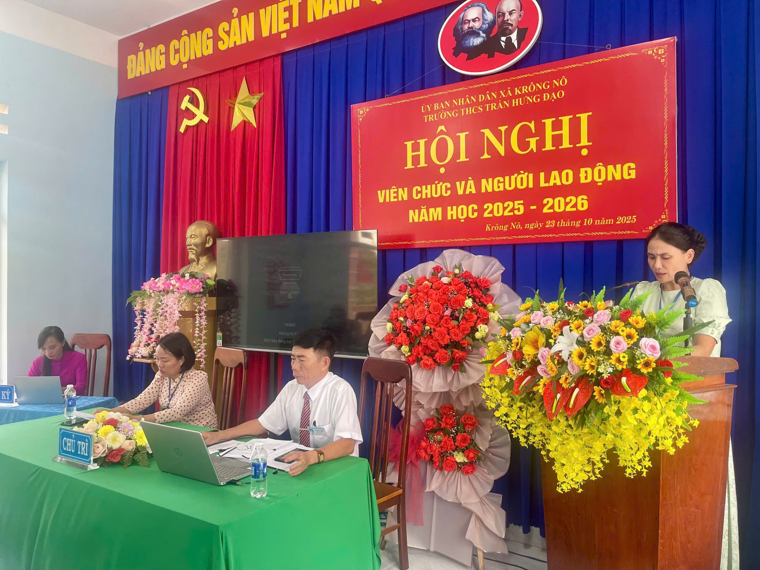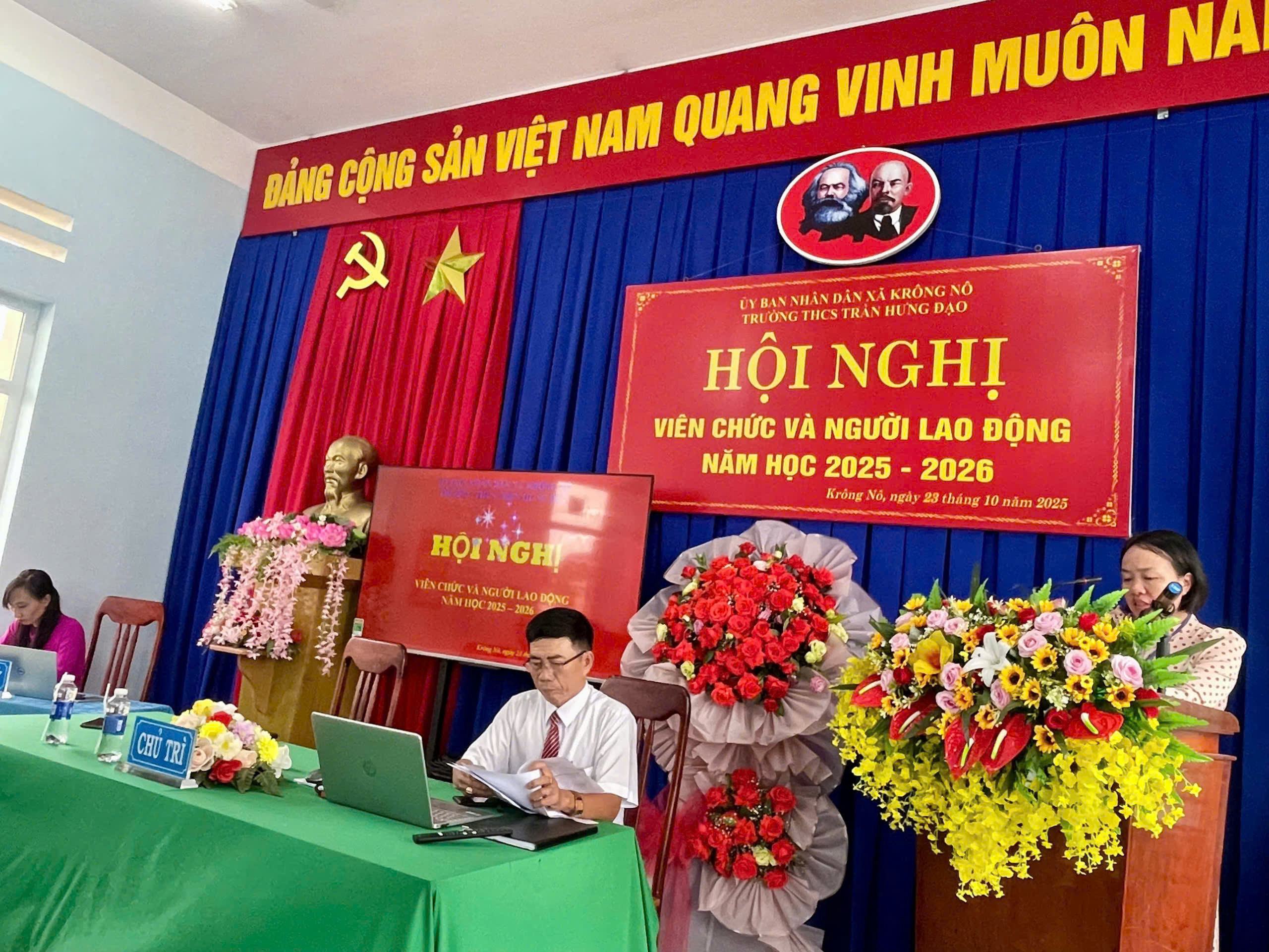 Chiều ngày 23/10/2025, tại Trường THCS Trần Hưng Đạo đã diễn ra Hội nghị Viên chức và Người lao động năm học 2025–2026. Hội nghị được tổ chức nhằm đánh giá kết quả thực hiện nhiệm vụ năm học 2024–2025; đề ra phương hướng, giải pháp cho năm học mới; đồng thời phát huy quyền làm chủ, tinh thần đoàn kết và trách nhiệm của đội ngũ viên chức – người lao động trong toàn trường.